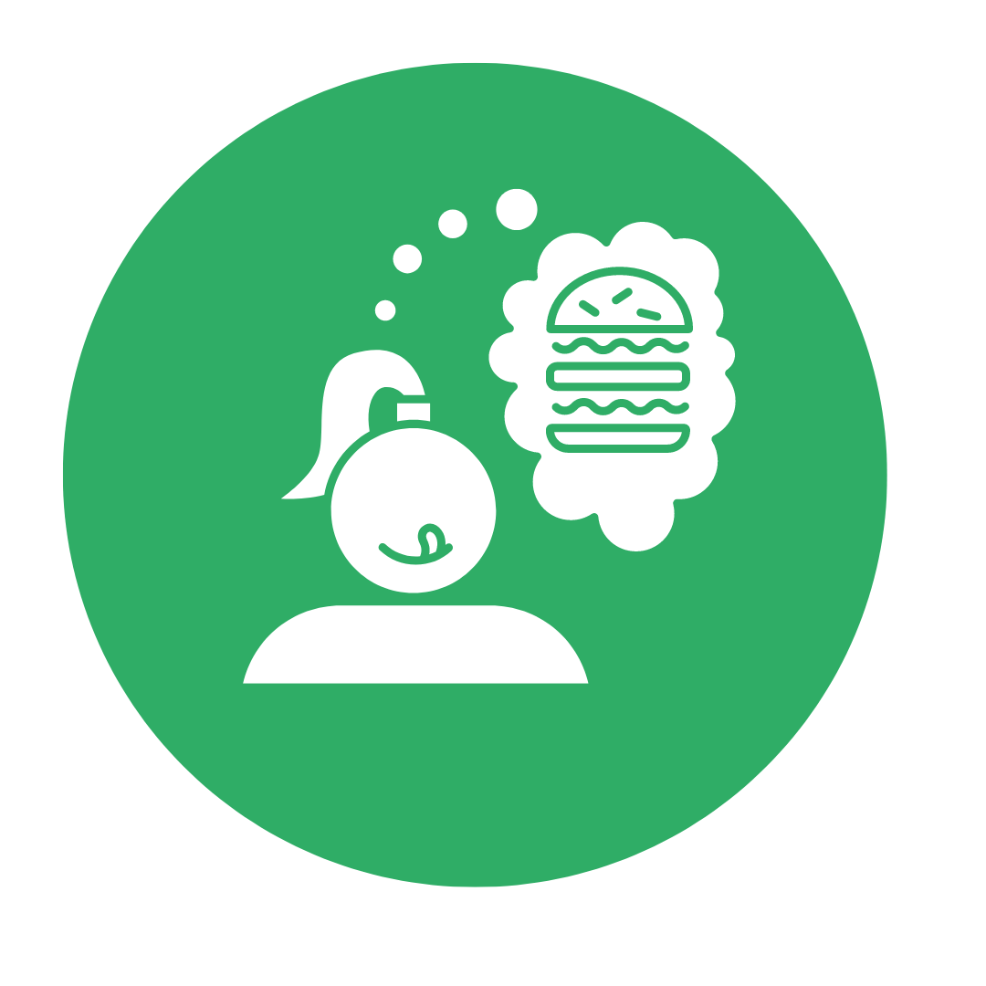 Sound – hearing a conversation about food Tiredness